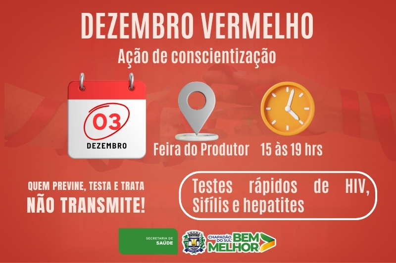 Mato Grosso do Sul Chapadão do Sul: Dezembro vermelho: Ação nesta quarta-feira, 03, destaca importância da prevenção e cuidado